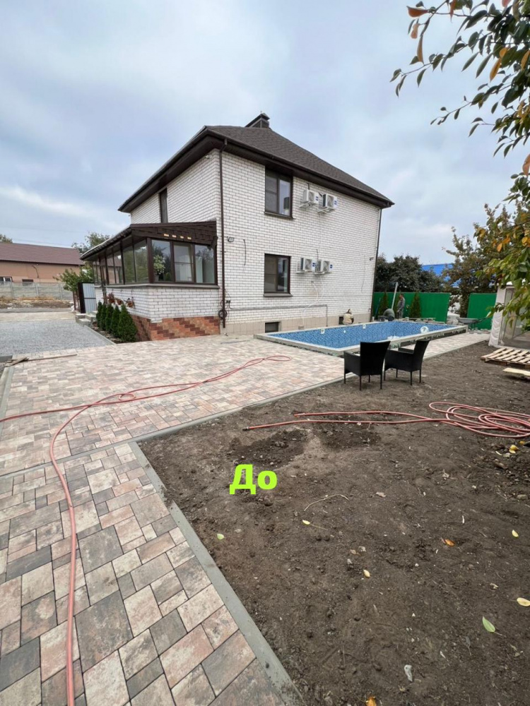 - Укладка брусчатки, установка бордюров;