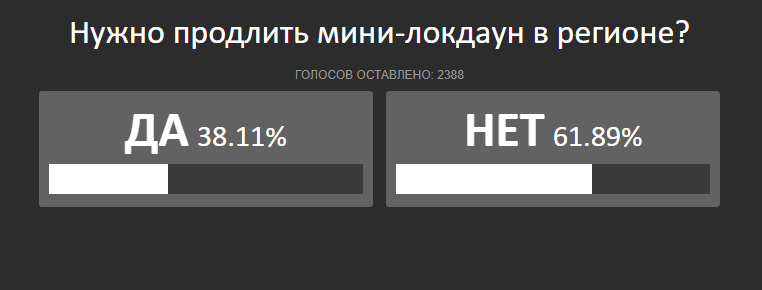 Как показал наш опрос, в котором приняли участие более 2 300 человек, 38,11% читателей поддерживают продление мини-локдауна в регионе.