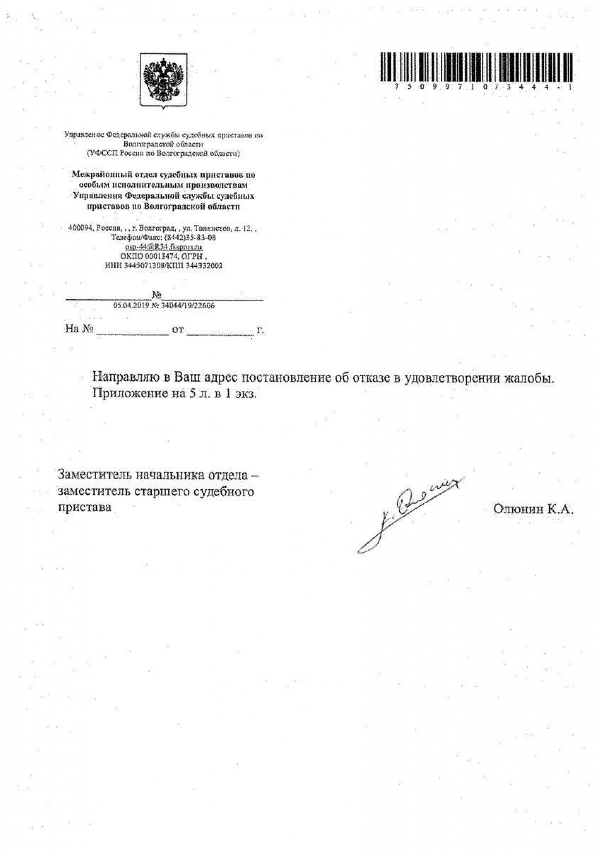 Волгоградец Александр Ш. написал жалобу в ФССП и прокуратуру. От приставов ответ уже пришел. В удовлетворении жалобы Александру они отказали, сославшись на то, что работа проводится в течение нескольких лет, а действия судебных приставов – правомерные.