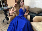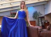 Ангелина вышла на сцену в синем платье и рассказала о своем родном городе.