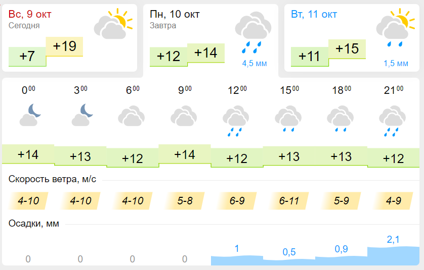 Вечером дождевой поток, а вместе с ним и порывы ветра, усилятся. Последние будут достигать 11 метров в секунду. Предусмотрите свой путь с работы: захватите зонт, обуйте непромокаемую обувь, попросите кого-нибудь на машине вас встретить и забрать. Одним словом, позаботьтесь о себе. Помните, к дождю и ветру добавляется еще и октябрьский холод. Максимальная температура днём будет достигать всего +14 градусов.