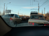 Сразу два ДТП произошли по направлению к центру города. Автомобили столкнулись перед поворот на улицу Дегтярева, вторая авария напротив остановки "Механический институт" еще больше затормозила движение.