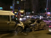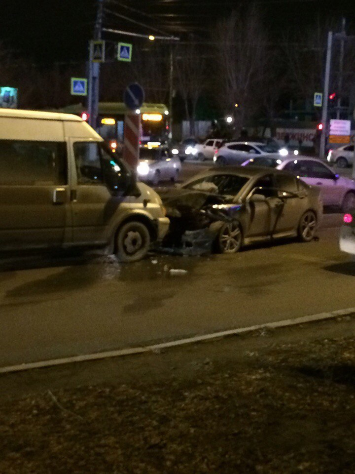 Иномарка врезалась в маршрутку на встречной в центре Волгограда