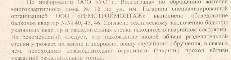 Фрагмент ответа от Администрации Волгограда