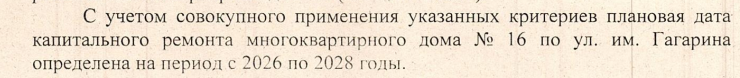И тем не менее, ремонт планирует лишь к 2026-2028 гг.