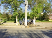 В результате ДТП автоледи снесла световую опору.