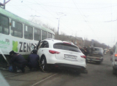 На юге Волгограда девушка-водитель протаранила трамвай