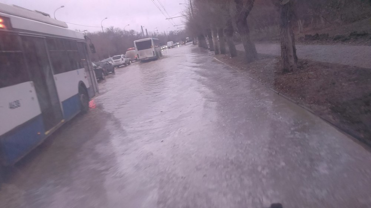 Образовавшееся «озеро» на севере Волгограда затруднило движение транспорта