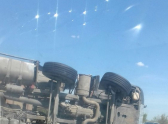 По предварительной версии, у КамАЗа лопнуло переднее колесо во время пути. Также известно, что водитель в аварии не пострадал.