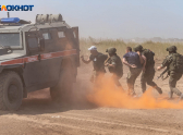 Также посетителям полигона показали на группы спецназа действуют на автомобилях «Тайфун» и «Тигр», а также действия военной полиции.