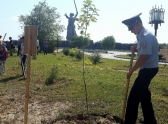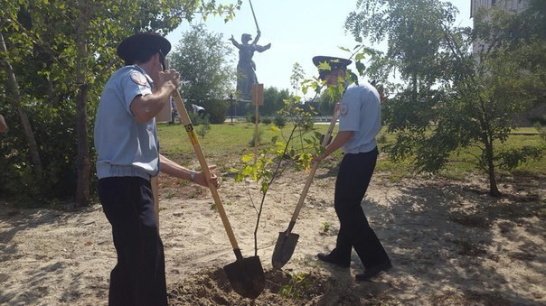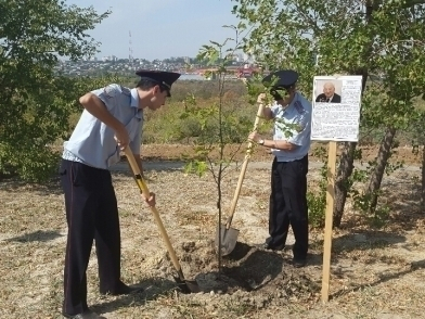 Таким образом полицейские присоединившись к акции, организованной в год празднования 70-летия со Дня Победы в Великой Отечественной войне Общероссийским экологическим общественным движением «Зеленая Россия», во время которой россияне в память о победителях высадили миллионы деревьев по всей стране.