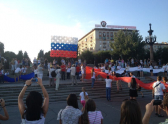 В центре Волгограда 22 августа жители города-героя отметили День российского флага. В небо в 19:00 был запущен триколор, весь состоящий из воздушных шариков.