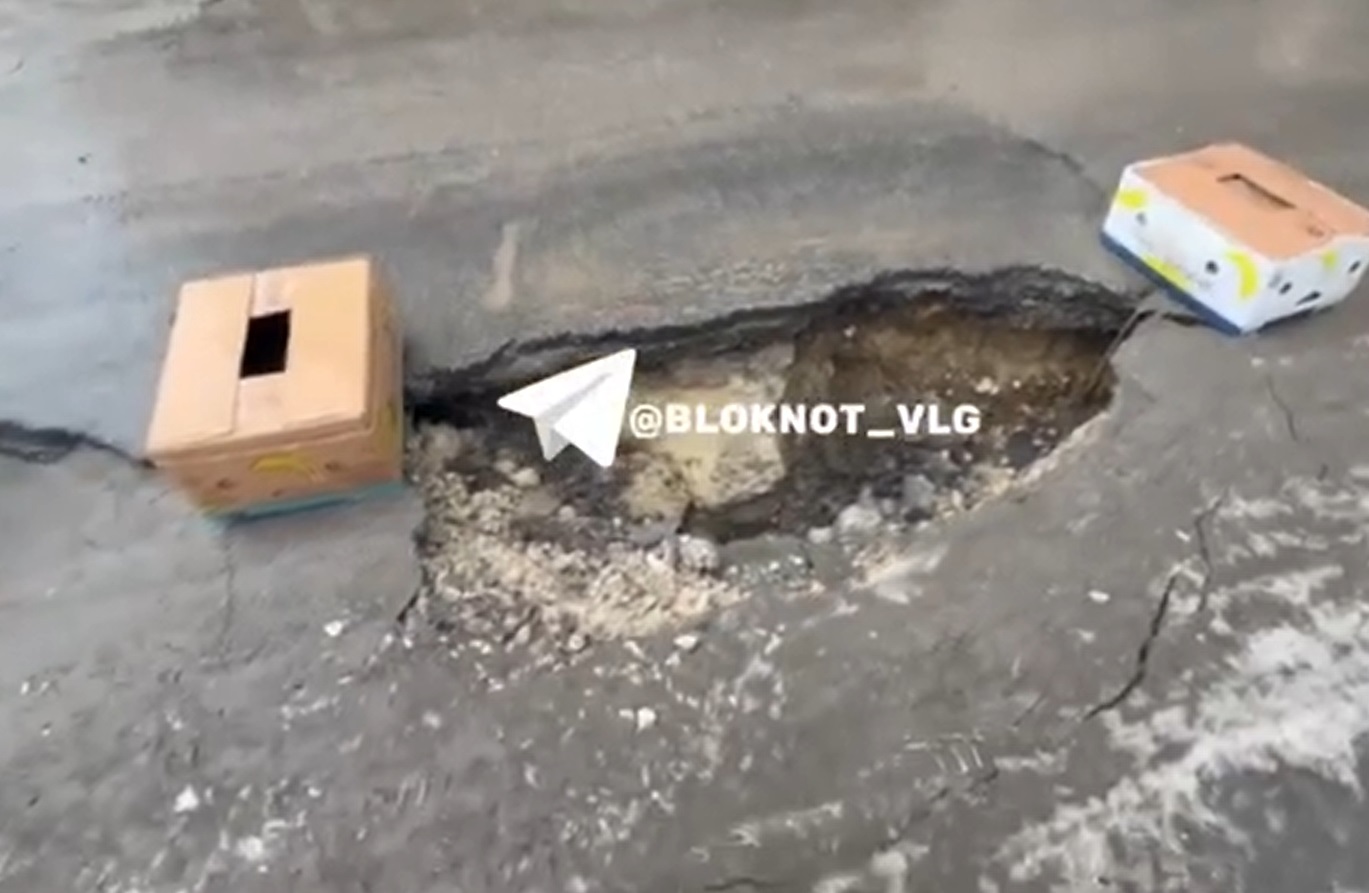 Еще в середине февраля жительница улицы Донецкой обратила внимание на огромный провал на оживленной дороге. Волгоградка снимала видео, где было видно, что проблему с двух сторон огородили коробками из-под бананов. А вчера вечером в этом провале оказалась чья-то легковушка.