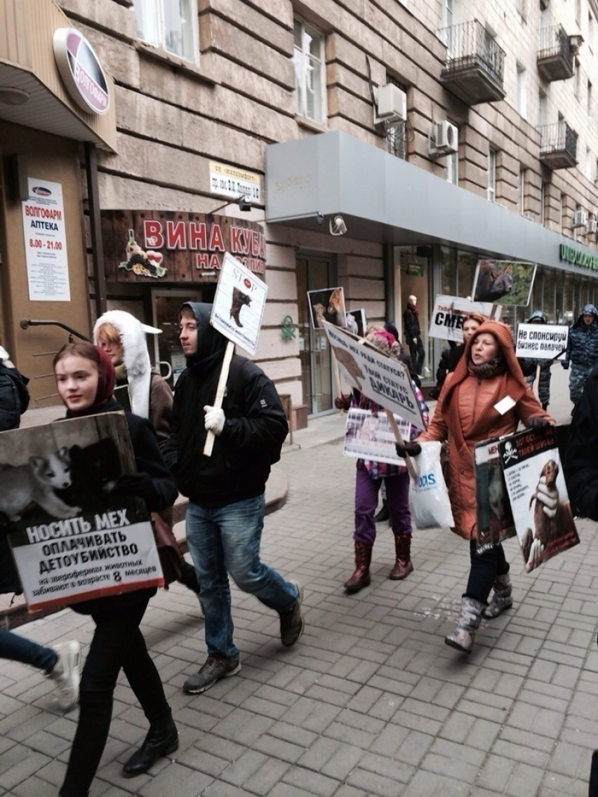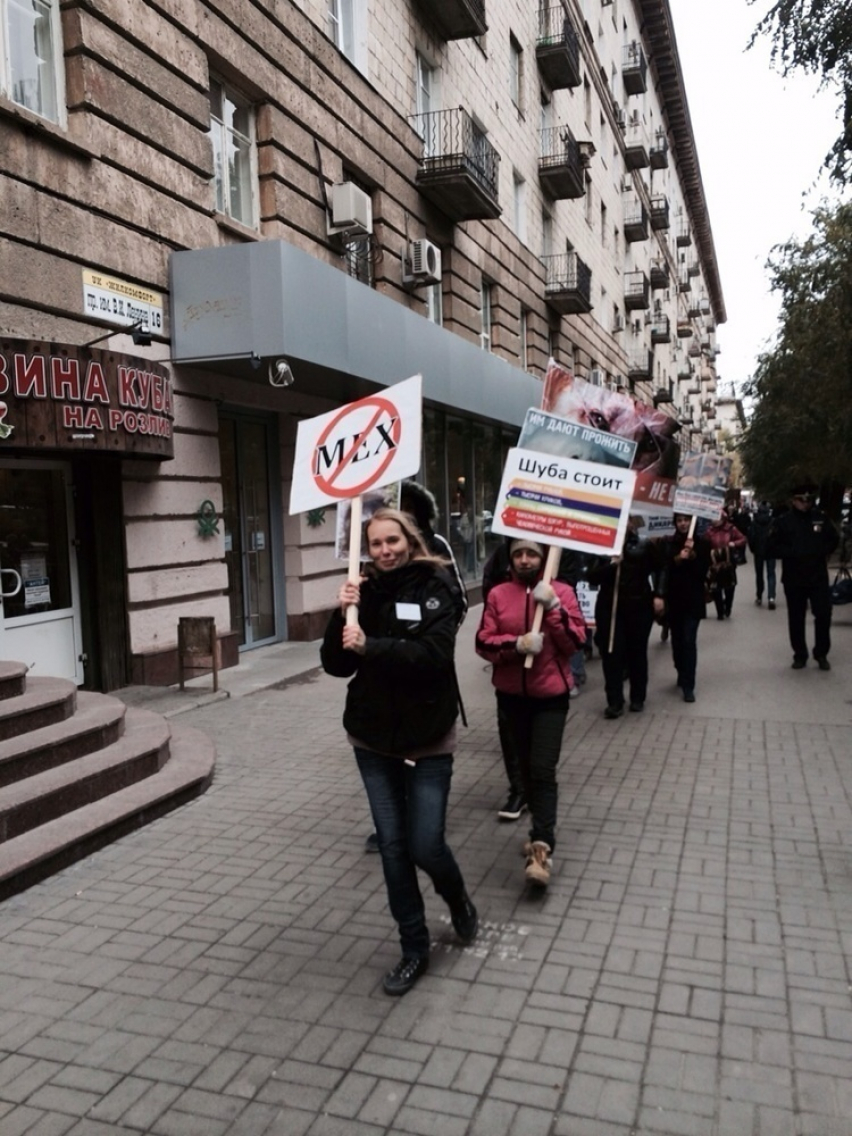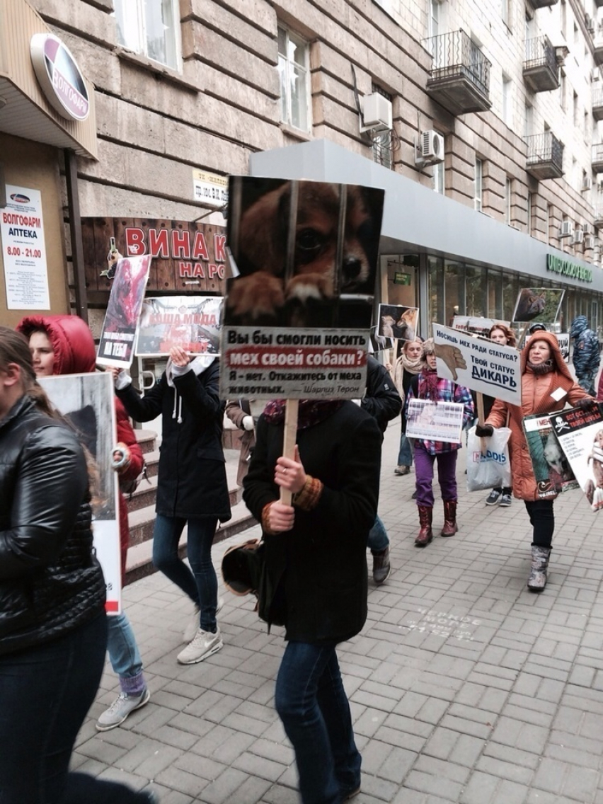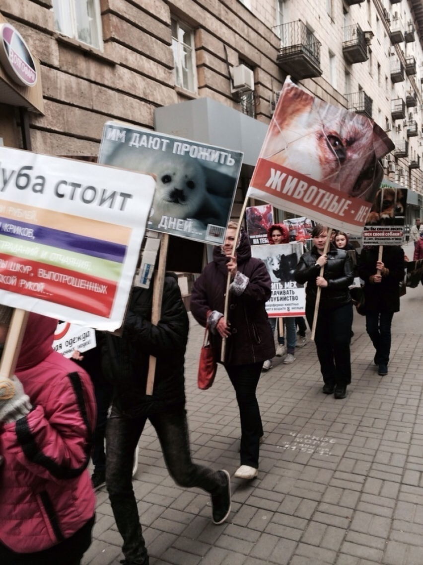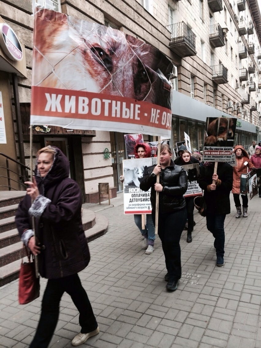 В Волгограде 19 октября в Центральном районе защитники животных вышли на марш. Около 20 человек с плакатами прошлись по центральным улицам. Плакаты гласили: " Вы бы смогли носить мех своей собаки? Я - нет. Откажись от меха животных.", " Носить мех - оплачивать детоубийство. На зверофермах животных убивают в возрасте 8 месяцев и тд.".
