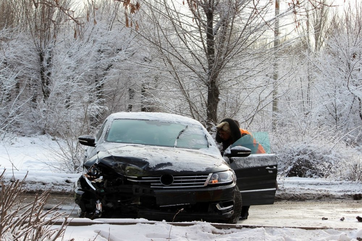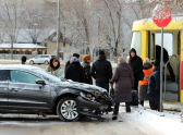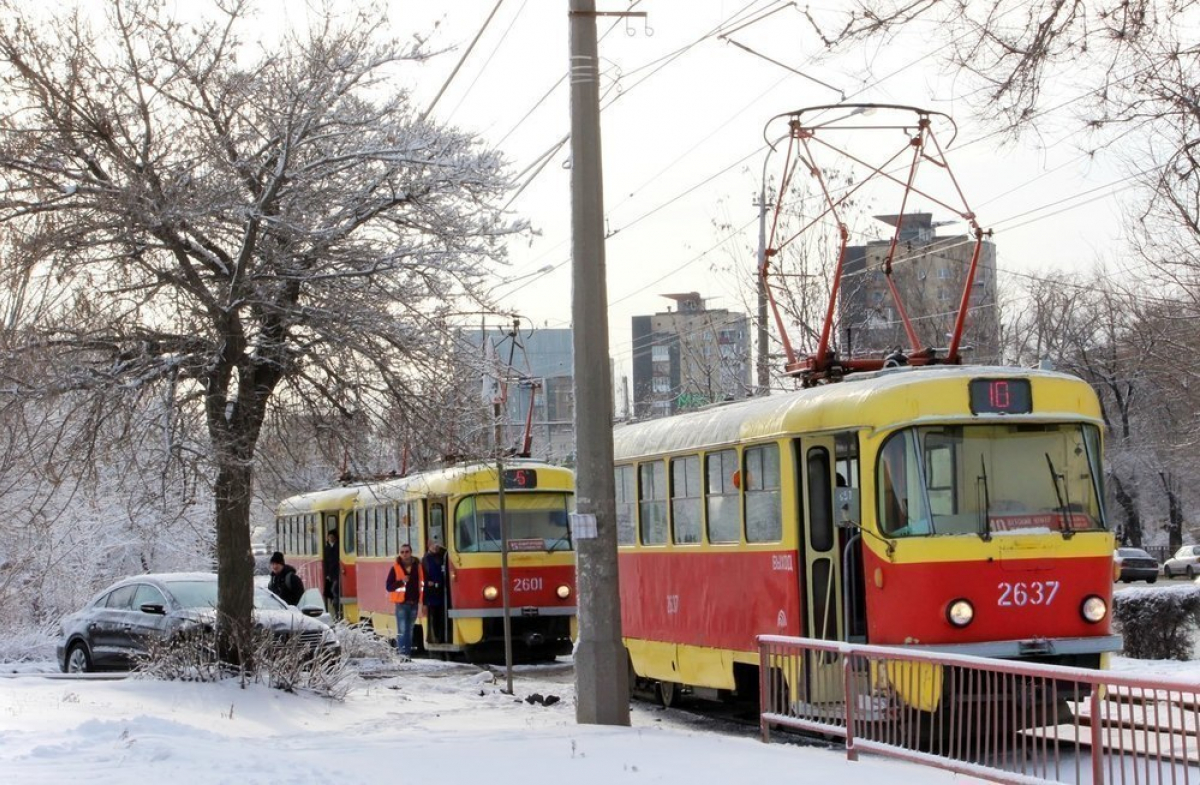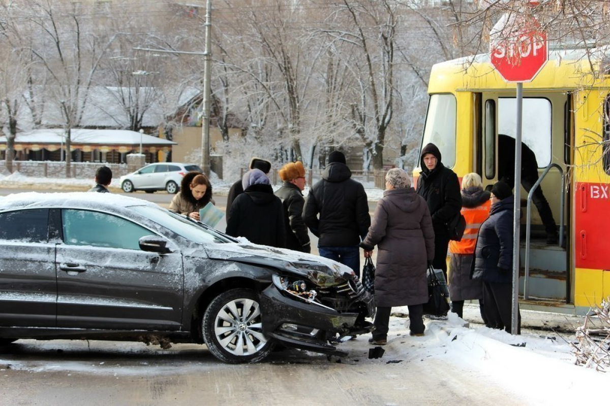 В Дзержинском районе Волгограда женщина-водитель 30 минут назад врезалась в трамвай.