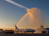 Символическую красную ленточку перерезали коммерческий директор ОАО «Международный аэропорт Волгоград» Евгений Садилов и Далер Ишанкулов, начальник отдела продаж авиакомпании. Первый рейс был встречен «водяной аркой», а пассажиров приветствовали девушки в русских народных костюмах с «хлебом-солью».