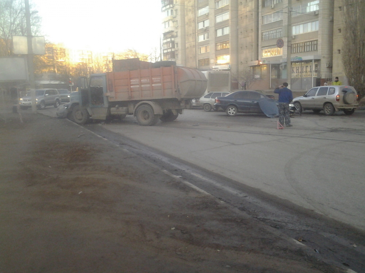 В Волгограде мусоровоз протаранил две иномарки: на месте ДТП реанимация