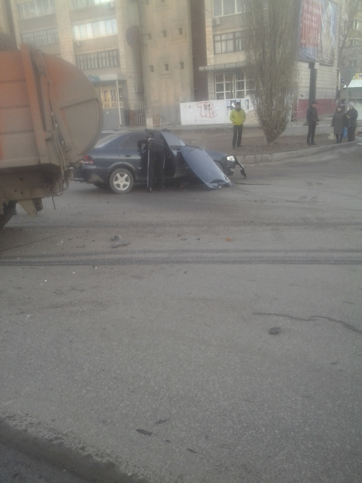 Как стало известно корреспонденту «Блокнота Волгограда», авария произошла около 40 минут назад. Уже известно, что на автодороге неподалеку от остановки общественного транспорта Виноградной и бульвара Энгельса мусоровоз протаранил Nissan Almera и Kia Rio. Со слов очевидцев, аварию спровоцировал водитель транспорта ЖКХ.