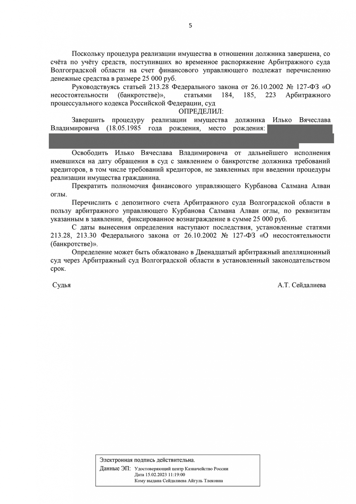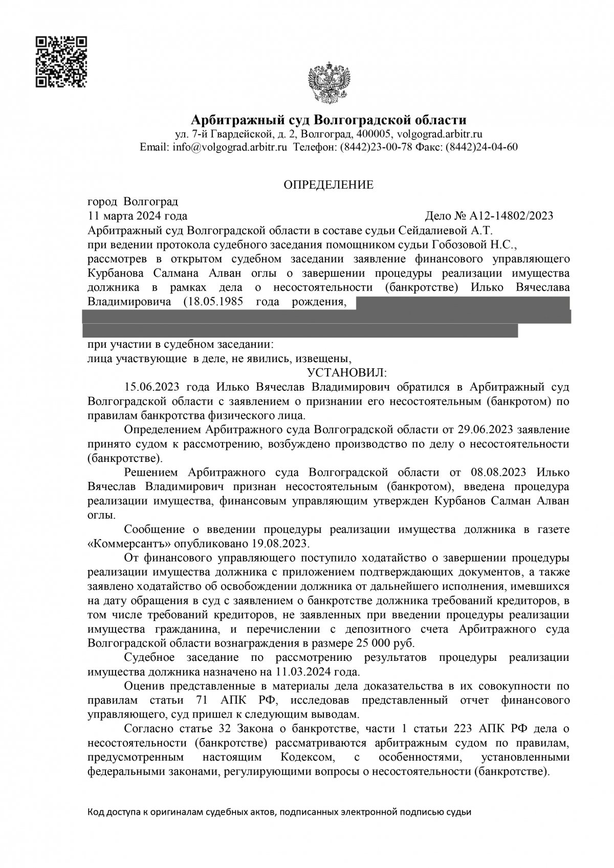 11 марта процедура банкротства завершилось, и с него списали все долги. По словам юристов «Амулета», процедура прошла без сложностей. Единственное жилье осталось во владении Вячеслава, а другого имущества, которое можно было бы реализовать в процессе, не было выявлено.