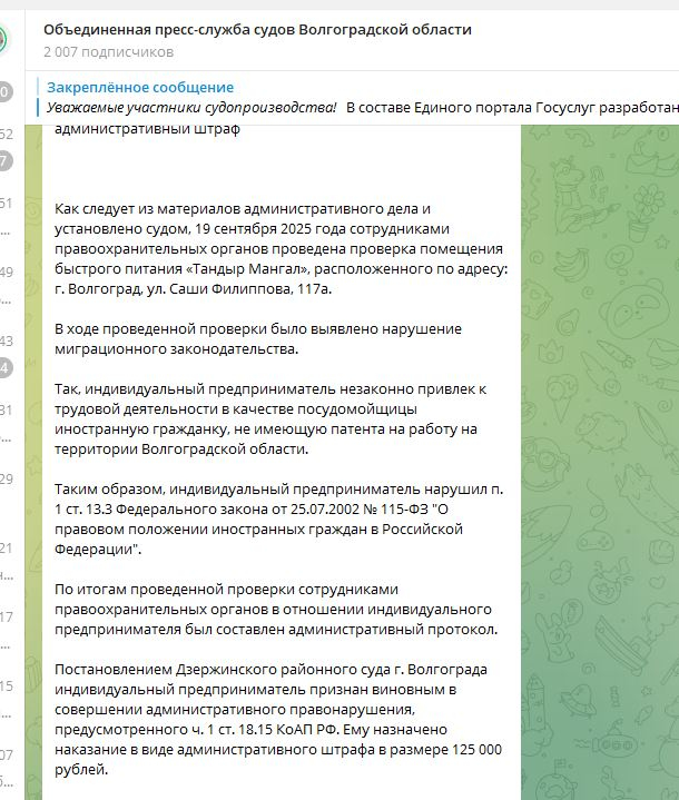 Постановлением Дзержинского районного суда Волгограда владелец точки общепита признан виновным в совершении административного правонарушения, предусмотренного ч. 1 ст. 18.15 КоАП РФ. Ему назначено наказание в виде административного штрафа в размере 125 000 рублей. Постановление в законную силу не вступило и может быть обжаловано сторонами в апелляционном порядке.