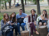 В России книга выйдет лишь в ноябре, но сегодня поклонники мальчика-волшебника собрались в Комсомольском саду и послушали отрывки из еще не опубликованного в нашей стране произведения.
